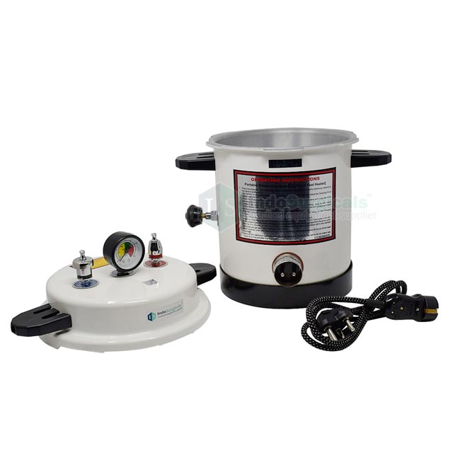 The IndoSurgicals Electric Aluminum Epoxy Coated Autoclave is a top-tier sterilization device, crafted from premium heavy-gauge aluminum and coated with epoxy for enhanced durability and cleanliness. This autoclave ensures a seamless, bacteria-free environment, vital for effective sterilization. Its pressure cooker design offers simplicity and efficiency, making it suitable for diverse applications.