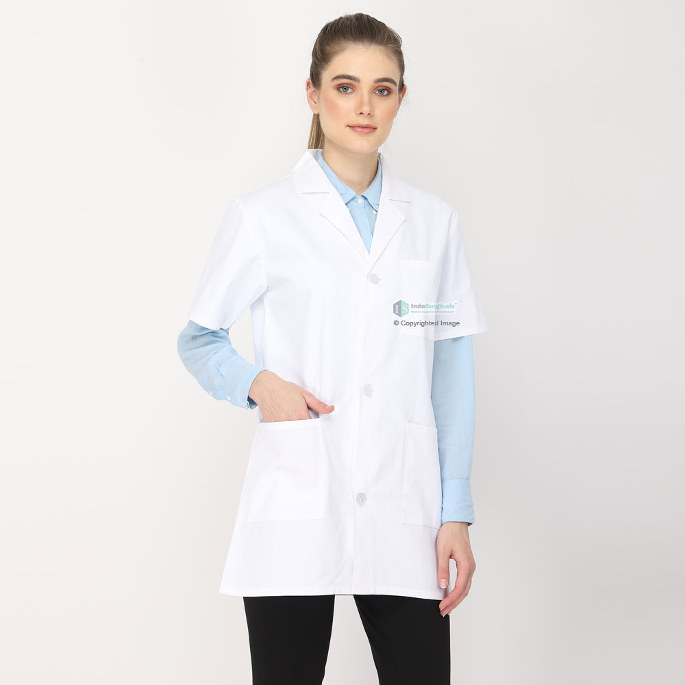 IndoSurgicals Private Limited is one of the largest and most trusted manufacturers, suppliers, and exporters of high-quality female lab coats. Our Female Lab Coat (Button Closure) Half Sleeve - Length 32" is meticulously designed to cater to the diverse needs of professionals across various fields. This lab coat is extensively used in chemistry laboratories, biological laboratories, hospitals, clinics, and medical colleges by doctors, nurses, medical students, lab technicians, pharmacists, researchers, dentists, veterinary professionals, radiologists, pathologists, and other healthcare and science professionals worldwide.