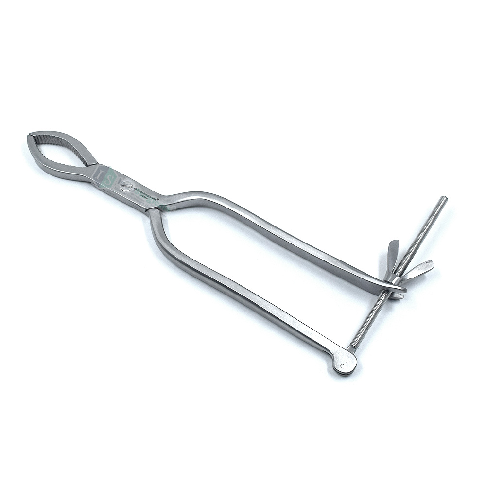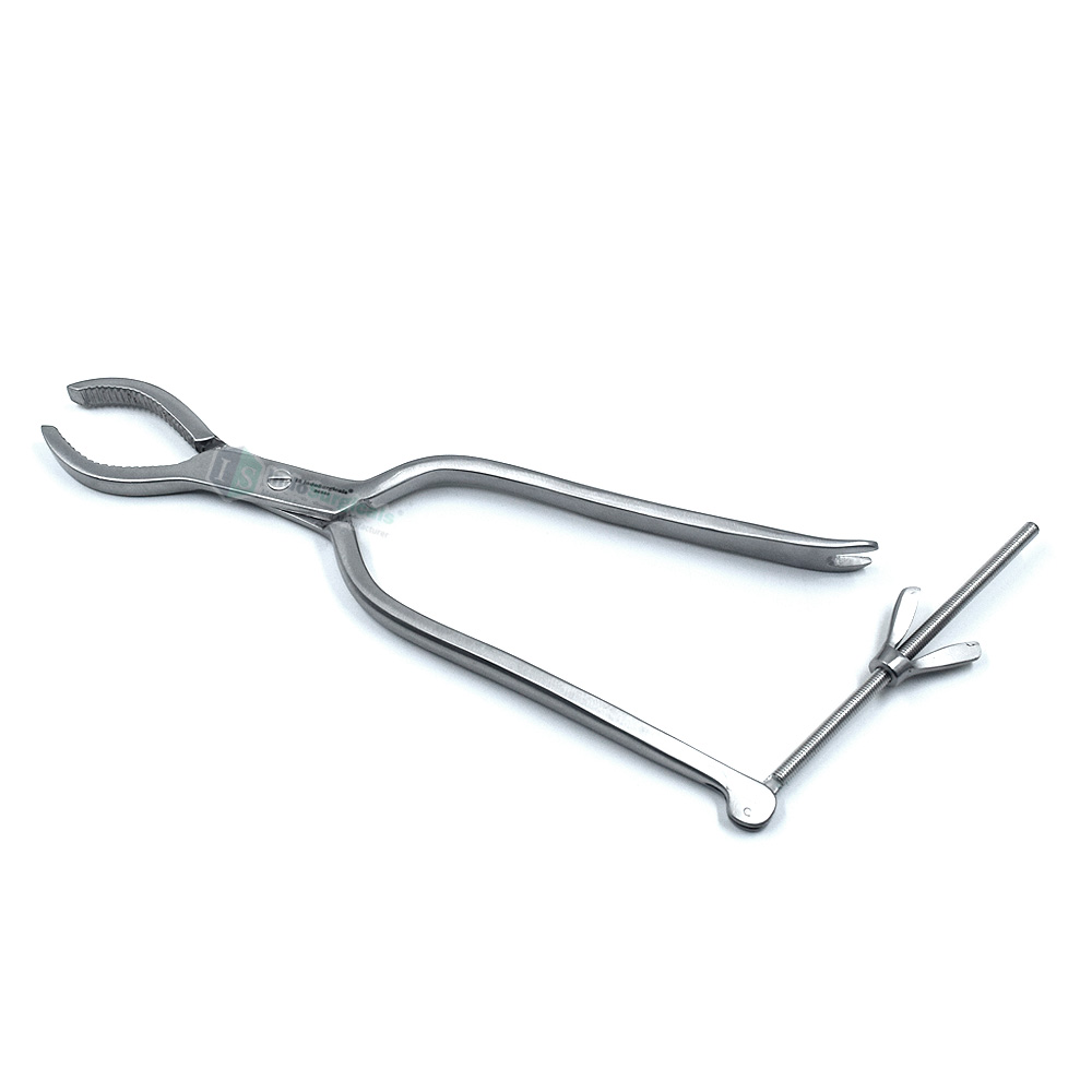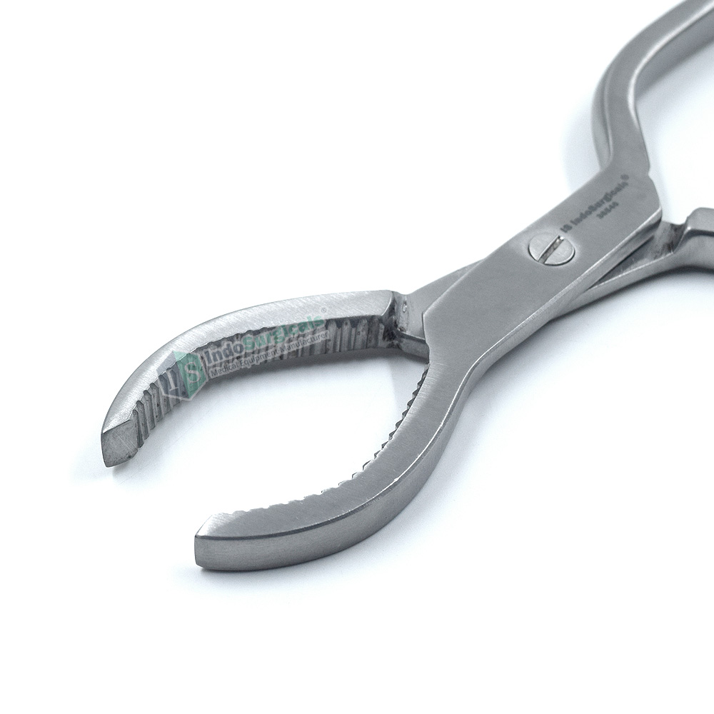 These forceps are crucial for orthopedic surgeries involving bone manipulation and placement. The integrated ratchet mechanism ensures a secure grip on the bone, allowing surgeons to perform procedures with greater accuracy and stability.