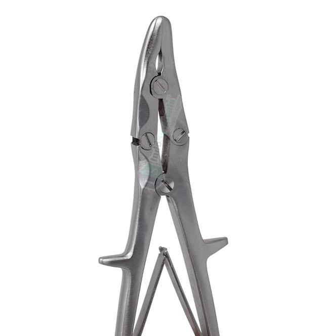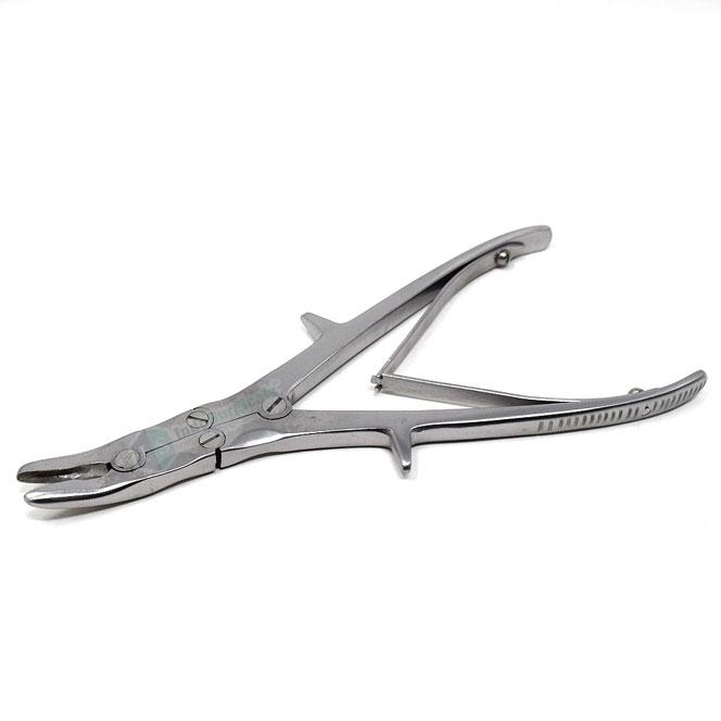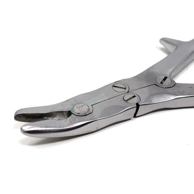 Our Bone Nibbler (Double Action) - Curved is expertly designed to facilitate the precise cutting and shaping of bone in a variety of orthopedic procedures. The curvature of the instrument allows for enhanced visibility and access in tight spaces, making it an indispensable tool for surgeries requiring nuanced bone manipulation. The double-action feature amplifies the cutting force, reducing hand fatigue and ensuring clean, controlled cuts with less effort.