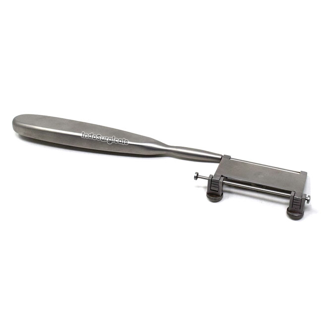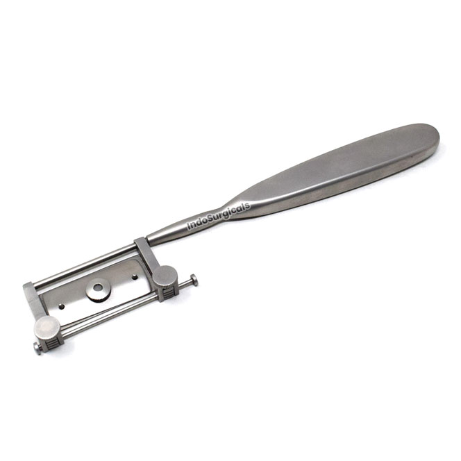 The IndoSurgicals Skin Grafting Handle with Wooden Box finds its primary application in Orthopedic, Plastic Surgery, and Skin Grafting procedures. This instrument is designed to harvest intricate grafts with precision, ensuring optimal outcomes for patients.