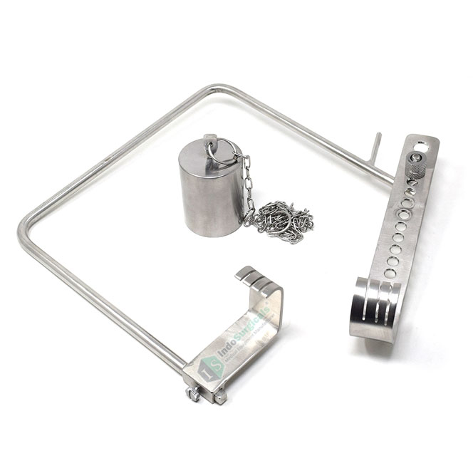 Material & Size: Crafted with premium quality stainless steel and adorned with a satin finish to minimize glare, this retractor is both durable and aesthetically pleasing. The instrument can be sterilized and reused. Additionally, it comes with a detachable weight, allowing surgeons to transform the instrument as needed. It also includes a hook with a chain and weight to pull on one blade for traction.